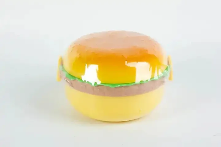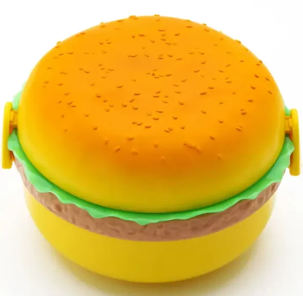 هل يعاني طفلك من قلة الشهية في المدرسة؟ 😕 الآن يمكنك جعل الغداء أكثر متعة مع صندوق الغداء بتصميم البرجر الشهي! 🍔😍 تصميمه الفريد يجذب الأطفال، ويشجعهم على تناول طعامهم بحماس.